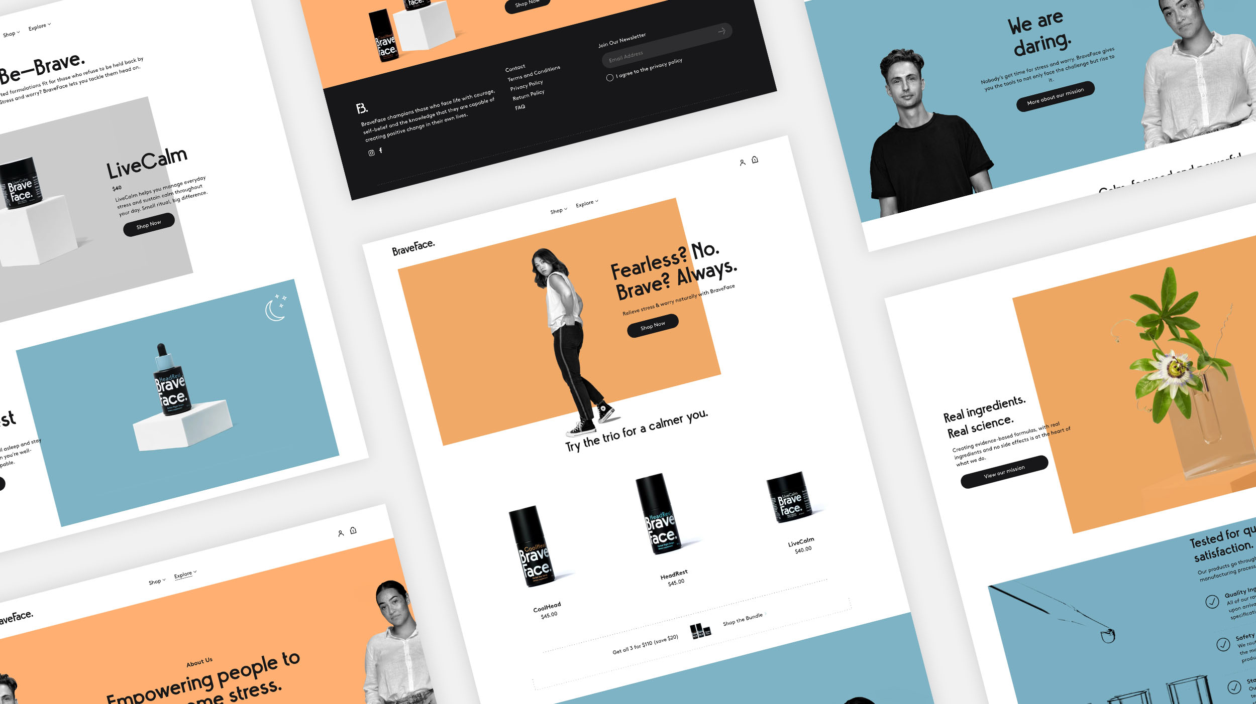 As BraveFace expanded into the competitive stress and mood supplement category, the brand needed a digital experience that built trust, educated consumers, and reflected its empathetic, science-meets-self-care identity.