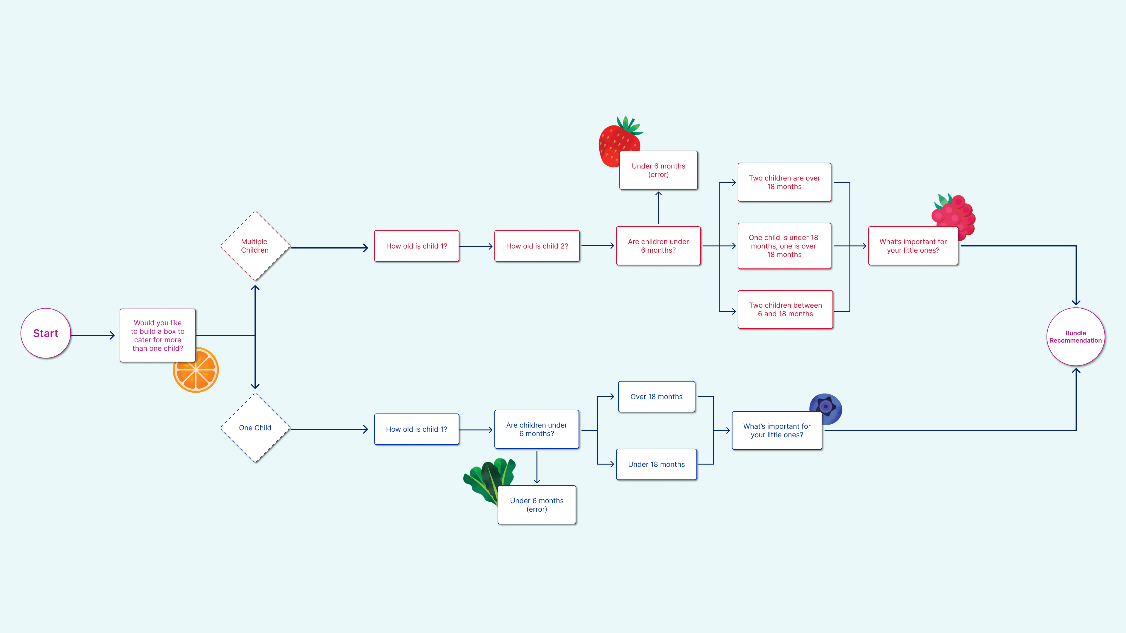 To navigate parents through O'Farm’s product line, we created a quiz that asks about their child’s age, dietary needs, how much they eat, and flavor preferences to curate the perfect products for their little one.